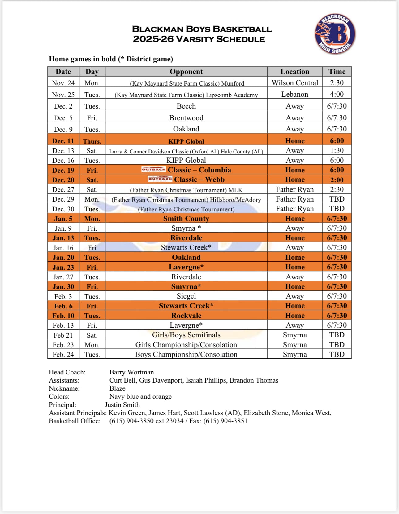 Boys Basketball Schedule